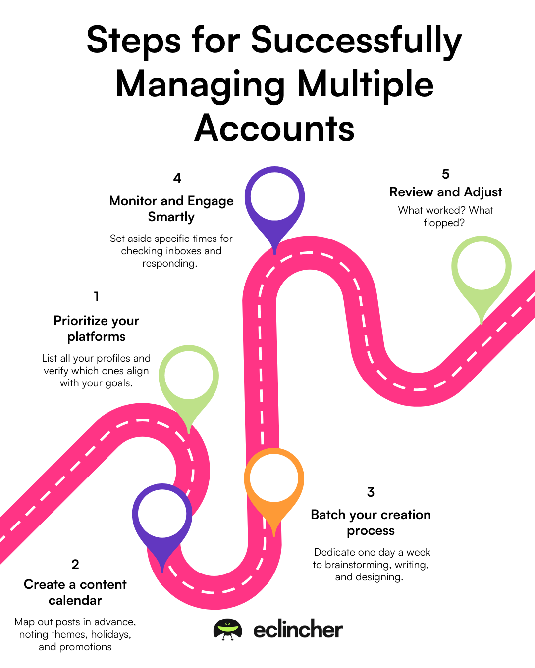 In today's digital world, managing multiple social media accounts isn't just nice—it's essential. With over 4.9 billion people on social platforms worldwide, your brand needs a presence everywhere to reach your audience. But fear not! This blog is your friendly guide to taming the social media beast. We'll dive into the biggest challenges, share practical steps to succeed, explore how AI is swooping in like a superhero to save the day, spotlight the best tools (with a big shoutout to Eclincher), and wrap up with some pro tips. By the end, you'll feel empowered to handle your accounts like a pro. Let's get into it!