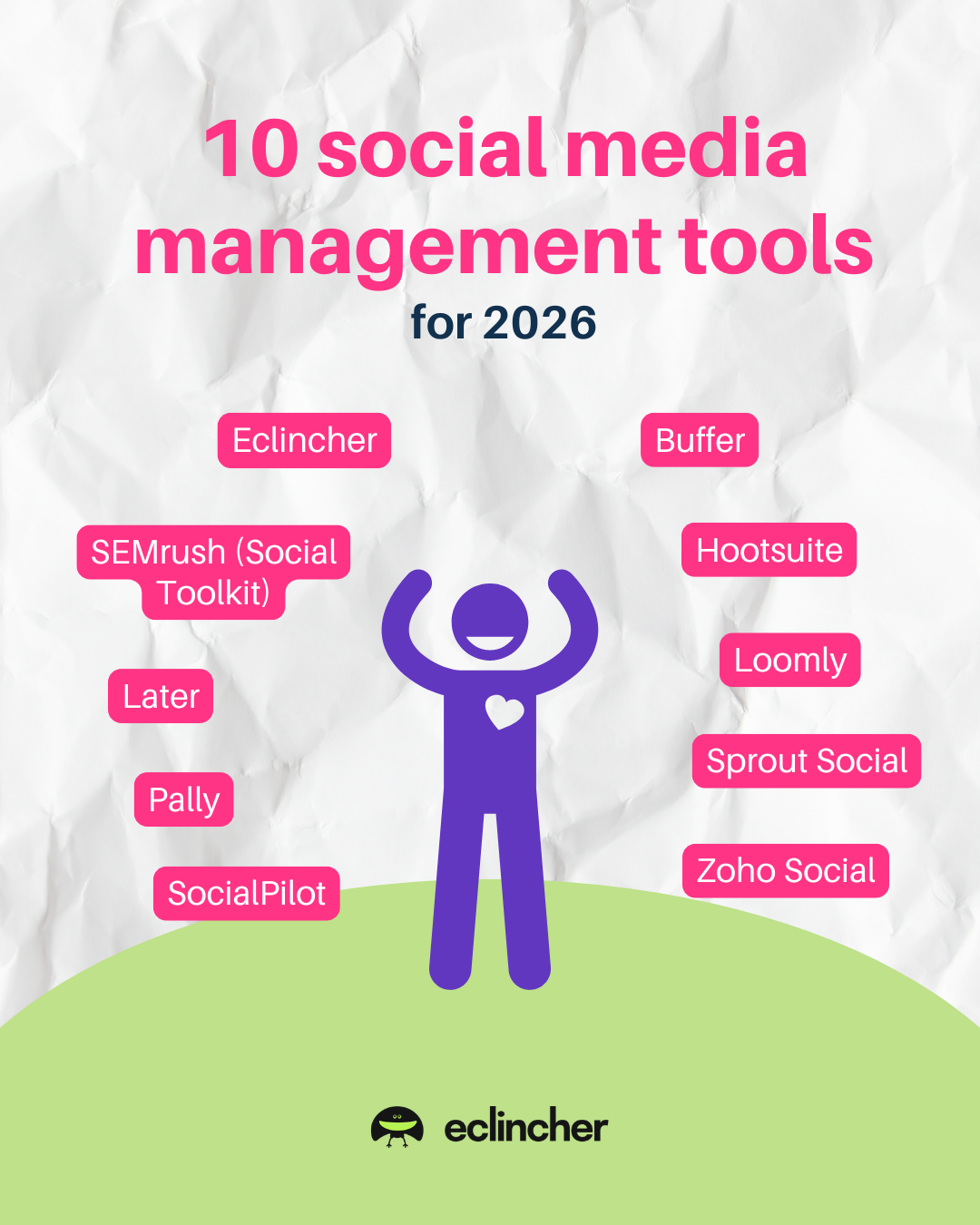 If you're only going to pick one tool to test right now, start with Eclincher. It’s a versatile, all-in-one platform that can grow with your needs. Want a demo or more details? Head on over to Eclincher’s official page and see what it can do for you.