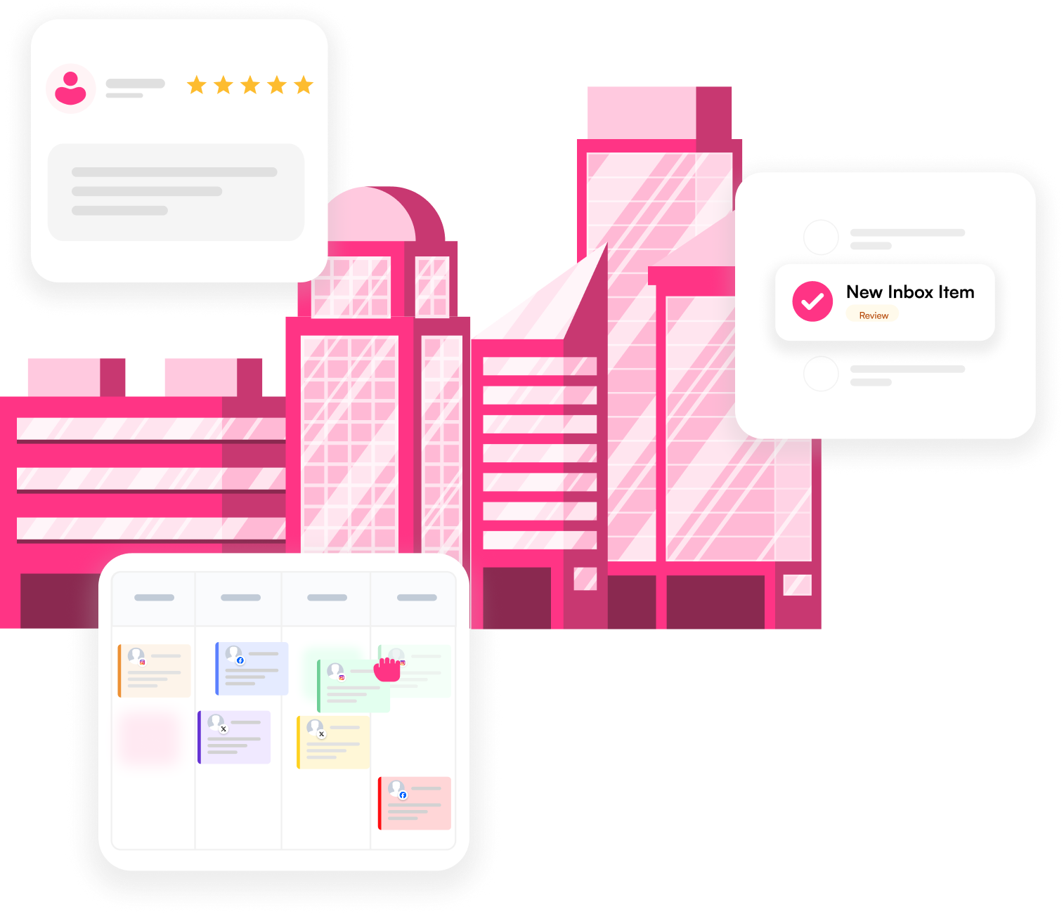 Seamless integrations: Facebook, Instagram, Threads, X, LinkedIn, Google Business, YouTube, TikTok, Pinterest, Bluesky, WordPress, Gmail, Google Ads, Google Analytics, Bing, OpenAI, Grok, xAI, Salesforce, Service Now, Zendesk, Tripadvisor, Trustpilot, Google Playstore, App Store, Adobe Express, Mailchimp, Google Drive, DropBox, Cloudinary, Bitly, Giphy, Pexels, Pixabay, Unsplash, and much more